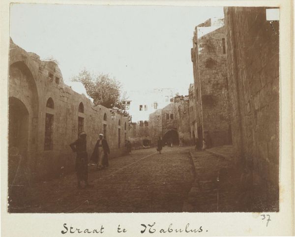 Johannes Lodewijk Heldring made this photograph of a street scene in Nablus in the late 19th or early 20th century. It presents a narrow, winding street flanked by stone buildings, their upper stories featuring projecting wooden balconies. The photograph offers a glimpse into the urban fabric of Nablus, a city with a rich history as a trade and cultural center in Palestine. Understanding the socio-political context of the period is crucial. This photograph was made when the Ottoman Empire was in decline, with increasing European influence in the region. Heldring, as a Western photographer, brings his own perspective and agenda to the act of representation. To fully appreciate this photograph, we might delve into archives, travel writing, and colonial records, all of which would reveal the complex dynamics of cultural exchange and power relations that shaped not only this image, but also the history it attempts to capture.