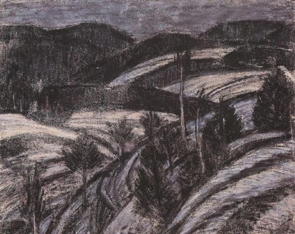 Istvan Nagy made this painting of hills with blue shades, we don't know exactly when, but let's dive in. The surface is alive with marks, hatched strokes of blue and white that suggest the cold bite of a winter landscape. Look at how the paint is applied, almost scrubbed onto the surface, giving it this raw, immediate feel, like he was battling the elements himself. This isn't just a pretty picture, it's a record of an encounter, of the artist wrestling with the scene before him. Notice that dark cluster of trees in the foreground? They're not just standing there; they're reaching, twisting, as if trying to escape the canvas. It reminds me of some of Emil Nolde's landscapes, that same brooding intensity, a sense of nature as something powerful and untamed. Art isn't about answers, it's about the questions we ask, and the spaces we create in between.