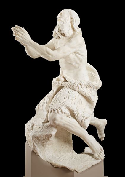 Curator: Immediately striking, isn’t it? The sheer muscularity carved in high relief from this slab of luminous marble—I can almost feel the desperation rippling beneath my fingertips. Editor: Desperation, you say? To me, it feels rather…staged. Like a meticulously choreographed ballet. There’s an undeniable elegance amidst the chaos, don't you think? It's very white. Curator: Absolutely! Now, for some context, what you are experiencing is Bertel Thorvaldsen's *Nessus Abducting Dejanira*, created between 1814 and 1826. Here, he illustrates a famous scene from Greek mythology. Editor: The drama! Of course! A centaur, half-man, half-horse, carrying away a… reluctant maiden? Tell me more! Though, I admit, my first thought was less about the narrative and more about the process, that such an active scene came entirely from white marble. Curator: The interesting thing to consider is the industrial transformation around the marble trade at this time, along with discussions about cultural purity and value of the ancient materials in newly created sculptures and the reuse of marbles. Thorvaldsen expertly employs the contrast between smooth flesh and textured musculature to emphasize the figures' struggle, which only deepens the overall sense of movement. You are very attuned to these details! The marble from Carrara, the transportation of such, along with discussions regarding purity and cleanliness... the final sculpture asks some fundamental questions, especially in the realm of access to natural resources at the turn of the nineteenth century! Editor: True! And how each cut had to matter; that marble is heavy. This piece feels very deliberate. Despite the inherent drama of the abduction, I keep returning to the almost serene expression on Dejanira’s face. Perhaps it's because she's accepting of her abduction! There are elements of resignation. Does it diminish the sense of violation inherent in the scene? The sculptor managed to imbue stillness with a sort of tragic acceptance of the events as if she is asking "is this it?". Curator: I interpret her expression differently. The arch of her body, the extended arm—to me, those read as desperate appeals to onlookers, almost gestures of frantic escape! What I take away from this dynamic artwork is about gender and access to ancient material, refigured under Neoclassical artistic traditions. Editor: Fair enough. Different eyes, right? Regardless, that is indeed why art matters, doesn't it? Curator: Indeed, art's greatest strength lies in its enduring ambiguity and multifaceted access, sparking contemplation about both the past and the present.
