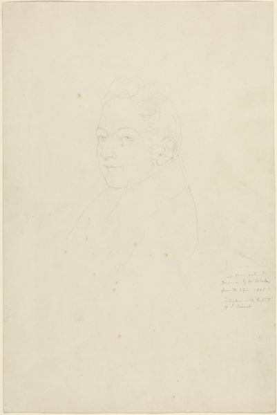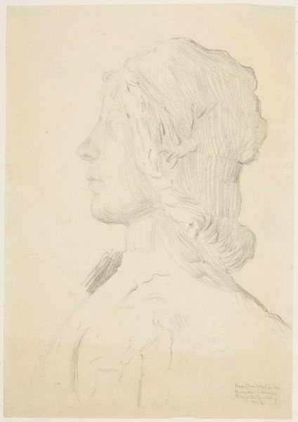 Editor: We are looking at Edvard Munch’s “Portrait of a Woman,” created around 1896 using pencil and printmaking techniques. It's delicate. A simple drawing. What strikes me most is its unassuming nature, considering the drama often associated with Munch. How do you interpret this work within Munch’s broader career? Curator: That's an astute observation. We tend to box Munch into "The Scream," but seeing this piece gives us the opportunity to understand how he situated himself in the art world. Late 19th century art, especially portraiture, was heavily tied to social status and identity. It was less about simply rendering likeness, and more about solidifying one’s place in society. Editor: So, was he trying to conform to social expectations here, or was he subverting them somehow? Curator: I think it's both, and the ambivalence is where the interest lies. Look at the directness of the gaze, the way the face is sharply rendered, yet the body is just hinted at. It’s like he’s saying, "Yes, this is a portrait, but I'm only going to give you what I deem important.” What is he prioritizing by focusing on the face? Editor: Perhaps he is highlighting the sitter’s intellect or inner self, diverging from typical portrayals emphasizing wealth and beauty. I wonder who this woman was. Curator: Exactly! And consider that prints, unlike unique paintings, were made for wider distribution. It challenges the traditional concept of the portrait as exclusive to the elite. Who sees it matters. Whose image gets disseminated, and how? That’s where the socio-political context becomes vital. Editor: That reframes the image! I initially saw it as a simple drawing, but understanding the historical context adds layers of meaning about societal roles. Curator: Precisely! It encourages us to consider how even seemingly simple works participate in larger cultural conversations. There is much more to explore when viewed through that historical lens.