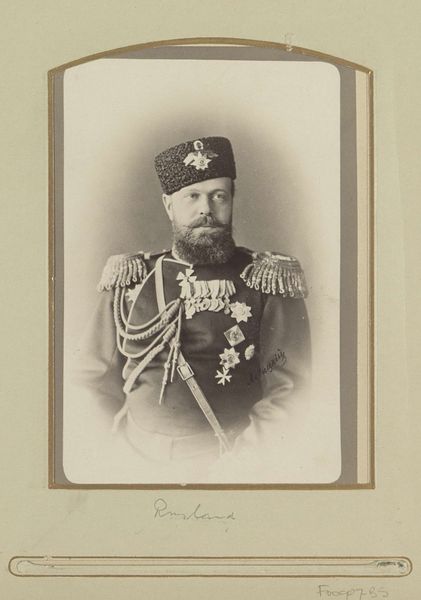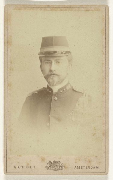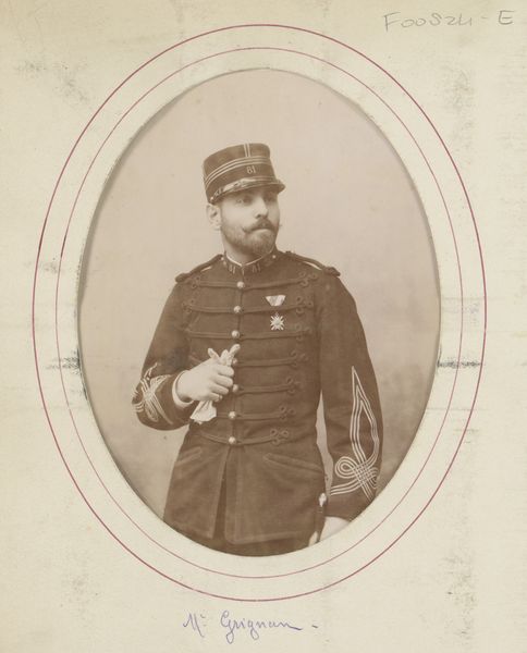 Roger Fenton created this portrait of Charles Hind using the collodion process. The print is mounted on paper. The composition presents a tightly framed, medium shot of General Hind. His direct gaze, coupled with the vertical thrust of the saber, creates a strong sense of presence. Observe how the uniform's dark tones are punctuated by the metallic glint of medals and buttons, drawing our eye across the chest. Fenton's technical skill is evident in the way he manipulates light and shadow to create depth and texture. The sepia tones evoke a sense of history, inviting us to reflect on the Victorian era's fascination with military prowess and imperial power. The photograph's formal structure, with its emphasis on hierarchical representation, mirrors the social structures of the time. Yet, there's a certain vulnerability in Hind's expression, hinting at the complexities beneath the surface of power. As such, the photograph becomes a site where traditional codes of representation are both reinforced and subtly questioned.