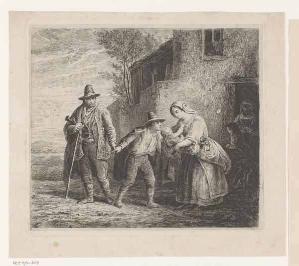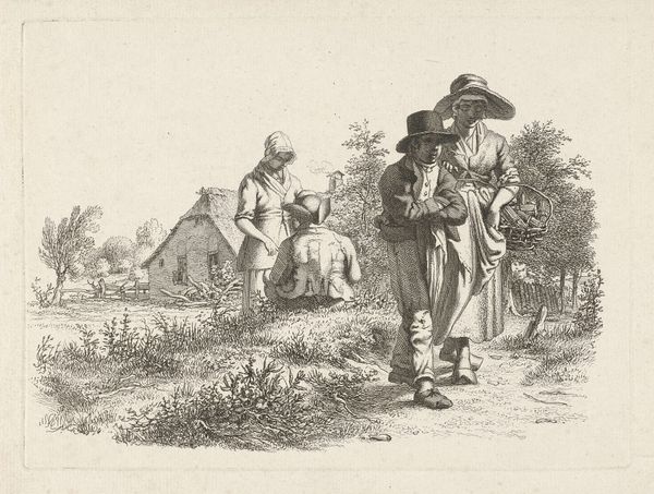 Jacob Ernst Marcus created this print of a hunter and company near a ruin using etching, a process that involves biting lines into a metal plate with acid, and then using that plate to transfer an image to paper. Look closely at the materiality of this print; the fineness of the etched lines, the cross-hatching that creates areas of shadow. Think about the labor and the skilled hand that was needed to create the artwork. Etchings like this one were commercial objects, made for sale. Note how this connects with the subject matter: the figures are fashionably dressed, enjoying a leisure activity within view of a ruined building. The hunter is set apart and may be their guide. But even he is well-dressed and relaxed. The whole scene implies a new kind of society, one in which money allows people to play in what was once a feudal landscape. By considering the material and making of this print, along with its social context, we can appreciate how it challenges traditional distinctions between fine art and craft, offering insights into the changing world in which it was created.
