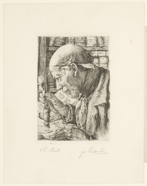 P.S. Krøyer created this etching of Lorenz Frölich around the turn of the century. Frölich, a contemporary of Krøyer, was a history painter and illustrator, celebrated for his depictions of Norse mythology and historical events. This portrait provides a glimpse into the artistic and intellectual circles of the time. Krøyer captures Frölich in a moment of contemplation or creation, hunched over a table. There is a sense of introspection but also of deep engagement with his craft. Consider what it meant to portray someone like Frölich, whose work contributed to shaping national identity through historical and mythological narratives. Krøyer, deeply embedded within the cultural and artistic milieu of his time, would have been very aware of how representations of fellow artists contributed to both their personal brand and the artistic environment they cultivated. This etching serves not just as a likeness, but as an exploration of the sitter’s identity. It is a reflection on the role of artists in constructing cultural memory and national identity.