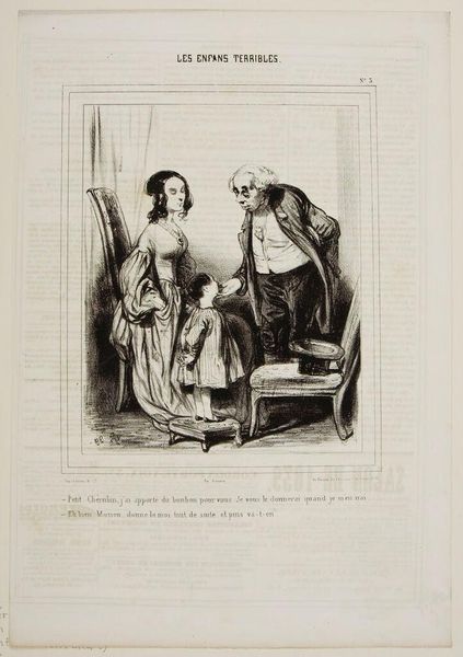 Curator: This etching, titled "My son, remember that there can be no happiness without virtue," seems soaked in sorrow. Look at the son, collapsed in grief. Editor: Absolutely. The print presents an interesting tableau of patriarchal advice, and the insistence on virtue as the sole path to happiness. Curator: There's something so intensely human about it, though. It feels like a timeless scene of familial drama playing out. The artist, Jean Baptiste Simonet, really captured the raw emotion, don't you think? Editor: Yes, but the image idealizes the father as an authority figure, downplaying any structural inequalities that might impact one's access to happiness. Virtue alone doesn't solve systemic issues. Curator: Perhaps, but there's also a tenderness in the image. That supporting arm… it speaks volumes. A father's role isn't just about dictating virtues, but also offering comfort. Editor: It's a carefully constructed narrative of power, and it's important to critique that while acknowledging the emotive qualities you've mentioned. Curator: Well, it leaves me contemplating what virtue even means, and how happiness might be more complicated than we're led to believe. Editor: Indeed, it serves as a potent reminder to critically examine the values we inherit and their implications in a diverse world.