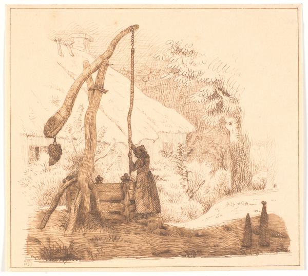 Curator: Constant Troyon rendered "The Workshop of a Wooden Shoe Maker" between 1833 and 1838 using pencil on paper. Editor: It's surprisingly inviting, isn't it? Dark and cluttered, yet it evokes a sense of cozy industry, like stepping back in time and smelling sawdust. Curator: Precisely! And that's quite telling, considering the Industrial Revolution's nascent stages during that period. Think about how images like these might serve as a commentary on a world that's quickly moving away from such artisanal trades. Editor: The image is deeply involved with gender, as well. Consider how workshops, historically, served as public learning and gathering spaces almost entirely excluded to women, which emphasizes both women’s labor contributions behind-the-scenes and broader issues regarding representation. Curator: Interesting! For me, I'm drawn to the interplay of light and shadow. Troyon manages to create depth using just pencil, conjuring textures that I swear I can feel through my fingertips. Editor: But this workshop wasn’t a timeless sanctuary, despite the image’s alluring aesthetics, and as viewers, we should never valorize labor exploitation in service of nostalgia. Wooden shoes aren't exactly haute couture, are they? Curator: Oh, but every so often a utilitarian object does make a star turn! It seems to celebrate a way of life and make a statement on what progress meant – or perhaps more aptly, on what was lost with it. What is preserved through representation also implies how certain experiences or forms of knowledge are often unwritten by history, while these very spaces are now preserved by art spaces like the Met in NYC. Editor: That preservation aspect is vital, of course. The depiction acts almost like visual anthropology—a record of an environment fast disappearing even as he drew it. Curator: And he's not romanticizing perfection either, it’s got rough edges, imperfections, the little details. What I like to imagine in the artist is that he felt a genuine admiration for this craft, and these craftsfolk, you can observe and tell by all of his marks. Editor: I agree entirely, despite my cynicism. It's the intimacy, the sheer attention to detail that elevates it, don’t you think? Curator: Absolutely. Editor: So here is to finding our way, as they did, between art and work.
