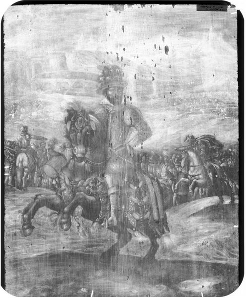 Curator: Before us is Peter Paul Rubens' 1603 charcoal and pencil drawing, "Study for an Equestrian Portrait of the Duke of Lerma," currently residing at the Louvre. Editor: There's a dynamism even in this preparatory sketch. The texture of the horse's mane, the way the Duke sits atop… it all points toward grand movement and power. Curator: Absolutely. Consider the baroque qualities already emerging: the diagonal emphasis of the horse's posture, the interplay of light and shadow that brings depth. This is more than just a preparatory drawing; it's a study in form and energy. Editor: And think about the craft itself – the directness of charcoal and pencil capturing a moment that’s meant for marble or paint. It exposes the labor of creation; the hours spent observing musculature, drapery. The drawing gives an immediacy the final, formal portrait would lack. Curator: While I see your point about the immediacy afforded by the medium, I’d also stress the planned compositional strategies at play. Note how Ruben’s handles space using dark charcoal to articulate key components in contrast to the expanses of visible page, lending emphasis to both figure and ground. Editor: But isn't there also something democratic about making this image accessible through a readily available medium like charcoal? It's not just about depicting power, but about the means used to disseminate it to a wider audience through prints or copies, facilitated by the use of cheaper and less demanding techniques. Curator: An interesting point. However, I see it as Rubens exploring aesthetic considerations first and foremost. This detailed underdrawing solidifies the visual rhetoric of power before the more considered processes of color are implemented. Editor: Perhaps. But for me, the value of this drawing lies not only in the artist’s rendering of power but also in understanding the processes involved in artistic creation during that era, reminding us of the human toil embedded in grand displays of power. Curator: Ultimately, we witness here the synthesis of skillful composition and masterful execution. A preliminary exploration, undoubtedly, but no less remarkable as an autonomous object of art. Editor: I concur, and perhaps it is this tension between formal execution and social labor that offers such a compelling depth to this dynamic drawing.