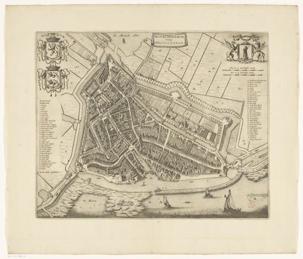 This is an anonymous print of Antwerp whose date is unknown. The map offers a bird’s eye view of the city and its surrounding landscape, the estuary of the Scheldt river, and a detailed register of important civic buildings. The history of cartography provides a valuable lens into the politics of imagery and the public role of art, particularly in 16th and 17th century Europe. Antwerp had grown into one of the most important commercial and financial centers in Europe, its port a major hub of international trade. The map is a celebration of Antwerp’s civic institutions and mercantile power. It depicts the city’s fortifications, its public buildings, and the dense web of streets and canals that sustained its vibrant economy. Maps like these were not just geographical tools; they were also statements of civic pride and political ambition. They reflect the social conditions that shaped artistic production, and the institutions that gave art its public meaning. Further research into the history of Antwerp and of cartography would help us understand its original purpose.