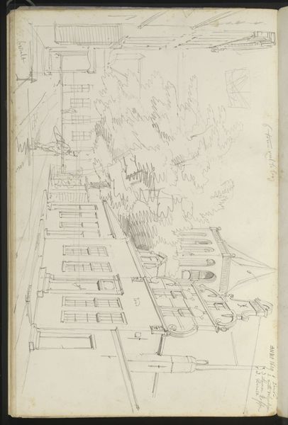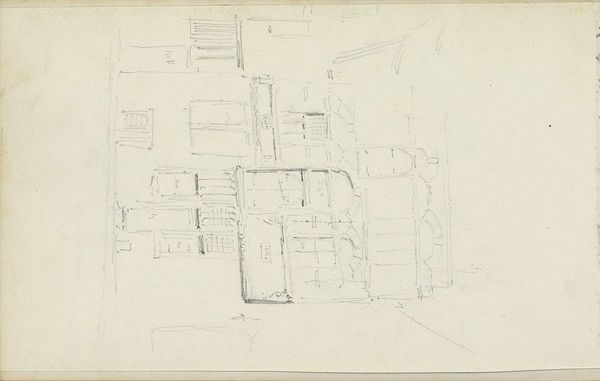 Adrianus Eversen created this sketch of a street with a church using graphite on paper. Eversen employed humble materials – graphite and paper – for the purpose of recording the architectural forms he encountered. Graphite, a form of carbon, leaves a metallic gray mark when rubbed across a surface. It's the go-to material for preliminary sketches, prized for its erasability and accessibility. Paper, derived from plant fibers, provides a readily available surface for capturing ideas. Eversen's rapid strokes, captured on paper, suggest a keen eye trained on urban space. The sketch, with its emphasis on architectural details, demonstrates the artist's attention to form, perspective, and composition. Eversen's sketch exemplifies the relationship between material, process, and observation. Graphite and paper afford the artist the means to explore the social and aesthetic dimensions of the urban environment. This work underscores the significance of drawing as a mode of inquiry, blurring the boundaries between art, documentation, and everyday experience.