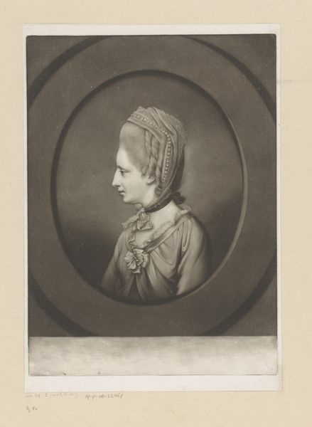 Francesco Bartolozzi created this print, Lady Mary, using etching and stipple engraving. Look at the layering of geometric shapes from the square neckline of her dress to the sharp angles of her headwear, which frames her face. Bartolozzi has employed a semiotic system of signs to capture Mary’s likeness through line and form. Consider how the texture is rendered. Short, soft, and concentrated strokes work to bring Mary to life while conveying an aesthetic value of the time. The lines suggest an engagement with the ideals of beauty and representation, offering a reading of status and identity through visual cues. Note the precision used to achieve the subtle gradations of tone and texture. Bartolozzi destabilizes a simple portrait by engaging with the cultural codes of his era. In doing so, he invites us to explore the interplay of technique, representation, and the construction of meaning in portraiture.