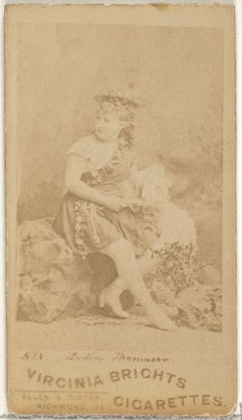 This small card, part of Allen & Ginter’s series promoting 'Little Beauties' Cigarettes, depicts an actress with a child. The embrace—a universal symbol of comfort—appears in countless depictions of the Madonna and Child throughout Renaissance art, representing maternal love and protection. Here, the gesture is repurposed, linking the actress's charm to notions of motherhood to market tobacco products. This is a striking transformation, from sacred iconography to commercial use, mirroring the societal shifts of the time. The emotional power of the embrace remains potent, evoking a sense of nostalgia and warmth that transcends its new commercial context. Like an ancient echo, these motifs reemerge, transformed by the needs and desires of each new era. The image, therefore, becomes a lens through which we see the cyclical nature of symbols, their endurance, and their capacity for reinvention.