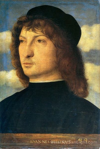 Curator: Here we have Giovanni Bellini’s "Portrait of a Venetian Gentleman," circa 1500, executed in oil on panel. Editor: My initial reaction is one of stark simplicity. The subject's black attire against that vibrant blue sky creates an unexpectedly bold contrast. Curator: Indeed. The composition is rather direct. Bellini meticulously models the gentleman’s face with subtle gradations of light, capturing a sense of reserved dignity. Observe the linearity in the planes of the face as well, forming a pyramidal structure with the sternocleidomastoid. Editor: I am immediately drawn to how that carefully constructed image also performs the role of wealth display. Though restrained, the quality of his garments whispers of privilege and influence in Venetian society. And there is a performativity in this visual language – it's crafted, it has specific aims, that create identity for the subject, whose position as Venetian gentleman is then elevated in its context to our view as viewers. Curator: Exactly, his clothing symbolizes more than personal taste; it is carefully curated symbolism intended to indicate status. The texture created with such detailed brushstrokes also elevates its status and therefore impact, and the artist elevates it via line, plane and composition into high art. Editor: That precision can almost seem distancing, can't it? We might appreciate the artistic skill, but can we truly connect with the person portrayed or the values he represents within that Renaissance hierarchy? Curator: That detachment may be an inherent element of the formal portrait genre of the time, wherein specific rules and stylistic gestures take precedent, reflecting an aesthetic rather than merely acting as an immediate transcription of observable details. Yet even here, one detects nuances within his expression that feel particularly personal or individual to this work of art alone. Editor: Well, despite any detachment I might sense, viewing this piece urges me to explore how such visual representations reinforced particular societal structures. What other voices were excluded? Whose stories weren't being painted onto panels? It really encourages deeper conversations around issues of representation. Curator: Absolutely, approaching artworks from varied angles ensures richer engagement. The layers of visual elements intertwine with social constructs, historical context and allow many perspectives of the Venetian gentleman to co-exist.