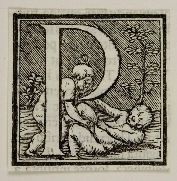 Editor: Here we have the print "Letter C," by an anonymous artist, housed at the Harvard Art Museums. It is all in black ink, and seems to depict some sort of struggle between cherubic figures. What do you notice about the composition of this piece? Curator: The engraving technique is striking. Note the density and directionality of the hatching lines that create tonal variation and volume. See how the artist uses contrasting line weights to define the figures. Editor: Yes, the stark contrast emphasizes the figures' movements, giving them a sculptural quality. The vines also weave in and out, creating a dynamic pattern. Curator: Precisely. The placement of figures within the 'C' contributes to the overall tension. Each element reinforces the other, creating a harmonious whole. Editor: I hadn't considered the interplay between line and form so deeply. Thanks for showing me what to consider when looking at engravings. Curator: My pleasure. Visual analysis refines our understanding of art.