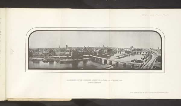 Editor: This gelatin silver print from between 1860 and 1867 presents a cityscape of Frankfurt am Main, with its distinctive cathedral in the distance. I’m immediately struck by the texture – the rough grass in the foreground versus the smooth, almost mirrored water. How do you interpret this work? Curator: Well, seeing this from a materialist perspective, I'm drawn to the technological context. Photography at this time wasn’t just art; it was a budding industry. Consider the labor involved. Someone had to prepare the chemicals, operate the camera, and print this image, potentially for mass distribution. Were these prints aimed at tourists, documenting industrial progress, or perhaps serving some other economic purpose? Editor: That's fascinating. I hadn't considered the industrial aspect of early photography. I was more focused on the aesthetic composition. So you see this as less about artistic vision and more about production and consumption? Curator: Not necessarily *less* about vision, but inextricably linked. The photographic process itself dictated the aesthetic. Long exposure times influenced the stillness, and the choice of subject matter—a city rapidly industrializing—speaks to contemporary societal values and where profit could be found. The cathedral towering above becomes less about spiritual authority and more about the photogenic representation of power and investment within a growing cityscape. The boats hint at how materials and people were constantly being transported throughout this growing hub. What do you make of them? Editor: It does change my view, seeing how the industrial process is part of the narrative of the work itself. I learned that it's crucial to understand the methods of production and labor when viewing works like this. Curator: Precisely. Thinking about art’s making is as crucial as contemplating its message.