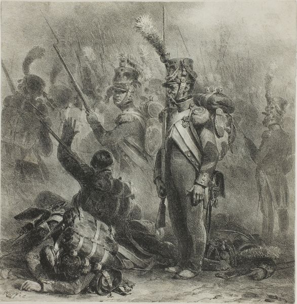 Nicolas Toussaint Charlet created this print, L’Allocution, in 1830. Here, the central figure, an orator, directs the revolutionaries forward, rifle in hand, his outstretched arm echoing classical gestures of command. This pointing gesture, seen across epochs, from Roman emperors to Renaissance battle scenes, symbolizes leadership and forward momentum. Yet, the orator’s somewhat disheveled attire and the ragtag group surrounding him inject a sense of revolutionary fervor and spontaneity, distinct from the calculated authority of past leaders. Consider, for instance, how Napoleon, in David’s paintings, strikes a similar pose, but with an air of divine right and imperial grandeur. Here, that authoritative gesture is imbued with the raw energy of popular uprising. This image resonates with the collective memory of past struggles and embodies a primal human urge to rebel against tyranny. It is not merely a historical record but a potent symbol of humanity's ongoing quest for freedom.