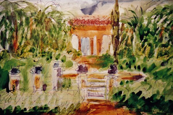 Maria Bozoky made this watercolor and ink drawing, Ms. Marianne in the Wallenstein Garden, at some point in her life. Look at those confident, energetic lines laid down to define the forms. It’s almost like she’s dancing with the brush and pen, letting the image emerge through the process of making. The texture is smooth, the colors translucent, and the overall feel is light and airy. I am drawn to how Bozoky’s use of watercolor is so evocative, the washes of color create depth and atmosphere. Take a look at the scribble of the tree. See how it comes alive, capturing the essence of its form without getting bogged down in detail. It’s this kind of looseness and spontaneity that I find so appealing. Bozoky’s work reminds me a little of Raoul Dufy; they both have this way of capturing a sense of place with minimal means, leaving plenty of room for the viewer’s imagination to fill in the blanks. Art, at its best, is a conversation.