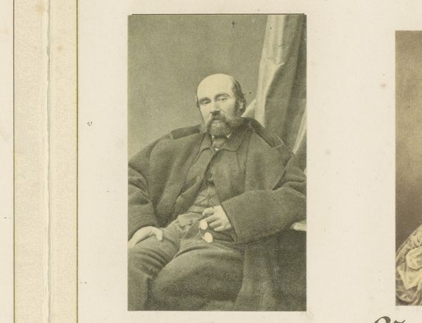 Editor: This is "Portret van Marie Eugène Bour," created around 1854 by Eduard Isaac Asser. It's an albumen print, presented in an oval format. I’m struck by how muted the tones are. It’s almost ghostly. What’s particularly interesting to you? Curator: I'm immediately drawn to the albumen print itself. Consider the laborious process required. Egg whites, carefully prepared, coated onto paper, sensitized to light. Each step, a physical interaction shaping the image. Editor: So, you see the human effort as being paramount to the image itself? Curator: Absolutely! Look at the subject's clothing; simple, practical. What statement is being made by how he’s chosen to represent himself, particularly when compared to the elaborate and decorative props so common in studio portraits of the time? And who benefits from this style? Consider how the economic structure allowed someone access to such methods and representation. The portrait is both a representation and a document of its own making. Editor: I see what you mean. The relative simplicity reflects back on who could or would have even had access to something that seems like an indulgence by modern standards. Curator: Exactly! The "high art" of portraiture intertwines here with very specific materials and labor practices, connecting Bour’s social position, the photographer’s skill, and ultimately, our own consumption of this historical object. This portrait encapsulates labor and materiality as social forces. Editor: Thinking about it this way makes me question the choices both sitter and artist are making by engaging with those material constraints, rather than simply viewing it as a finished portrait. Curator: Precisely!