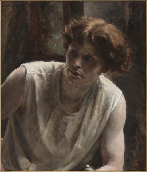 Pellizza da Volpedo created this intriguing portrait on canvas, using traditional oil paint. Volpedo was fascinated by the way light and colour could be meticulously applied through brushstrokes to create texture and depth. Notice the rough application of paint in the background that gives a sense of depth, as opposed to the smooth and soft application of paint to the woman's face. The very act of painting, with its repetitive gestures, reflects the rhythms of labor, not unlike the domestic work and impending motherhood that might occupy the young woman's life. Her steady gaze and the small, framed slate she holds suggests a quiet contemplation, perhaps even the patient accumulation of knowledge and experience. The painting invites us to consider how the value we assign to art is deeply intertwined with our understanding of labor, skill, and the social context in which art is produced. By looking closely at the materiality and making of this work, we appreciate the labor inherent in the artwork.