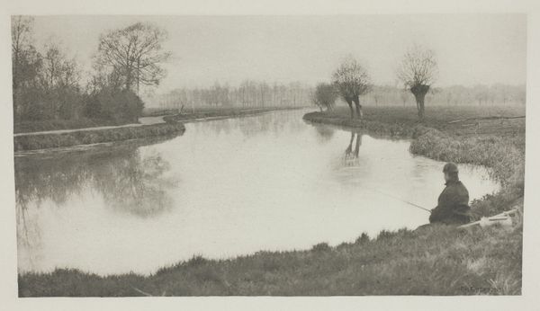 Curator: This photograph, titled "Stanstead from the Lea," was taken by Peter Henry Emerson around the 1880s. You can find it here at the Art Institute of Chicago. It’s a stunning example of his dedication to naturalistic photography, capturing the serene landscape of the River Lea. Editor: Mmm, instantly makes me feel peaceful...almost melancholic, like a quiet Sunday afternoon in a world before everything got so darn loud. The muted tones…the way the trees frame the water…It feels incredibly intimate, like a memory. Curator: That intimacy is precisely what Emerson strived for. He aimed to depict rural life authentically, pushing back against the prevailing artificiality of studio photography. Think about the social context of late 19th-century England. Industrialization was rapidly changing the landscape, and Emerson’s work offered a nostalgic view of an idealized rural past, particularly the vanishing agrarian lifestyle. He argued vehemently that photography should embrace "naturalism". Editor: Which meant what, exactly? Sorry, my brain's a little… impressionistic today. Curator: For Emerson, it meant representing scenes as the human eye actually perceives them, complete with selective focus. He rejected manipulative techniques and promoted minimal intervention. Editor: Ah, so less retouching and more just… being present. I can dig that. The texture here is interesting too. The softness in the water creates almost an impressionistic, blurry surface to counterpoint the sharper trees. It’s very tactile. Did Emerson work with specialized paper, do you think? It almost looks hand-printed… Curator: He favored platinum prints, which provided a wide tonal range and exceptional detail. Emerson wasn’t just capturing a landscape; he was engaging in a broader debate about photography’s status as art. His commitment to naturalism resonated with contemporaneous intellectual currents emphasizing empirical observation and the rejection of artifice. He thought photography could be more than just mere representation; it could be expressive and carry an aesthetic argument. Editor: It feels strangely contemporary too, in a way. This pre-industrial silence… almost resonates more strongly in today’s hyper-connected world. It’s a reminder of a quieter way of being. Curator: Absolutely. The image's stillness allows for critical reflection on the speed and artifice of contemporary culture, offering a subtle form of social commentary by contrasting past and present conditions. Editor: Yeah. Beautifully articulated. You make me think, and now I feel all intellectual! Curator: And you bring the poetry; together we managed to see, in the work, beyond its surface!