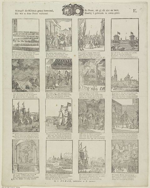 This print titled ‘Vaderlandsche mannen en vrouwen’ was made by Alexander Cranendoncq in the Netherlands. It depicts a series of scenes and portraits, each celebrating figures and events important to Dutch history and identity. Take, for instance, the recurring motif of the lion, a symbol of courage and nobility often associated with the Dutch Republic. We see it not just in the representations of military leaders, but it is also subtly present in architectural details. The lion, in its many forms, echoes through time—from ancient heraldry, where it signified royal power, to its adaptation as a symbol of national pride in the Netherlands. The memory of the lion stirs something deep within, connecting the viewer to a lineage of strength and resilience. The image also invites us to reflect on the interplay between conscious national identity and the subconscious desires that shape our collective memory. How have symbols like the lion been passed down through history, shifting in meaning, yet retaining their power to evoke strong emotions?