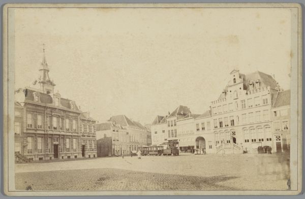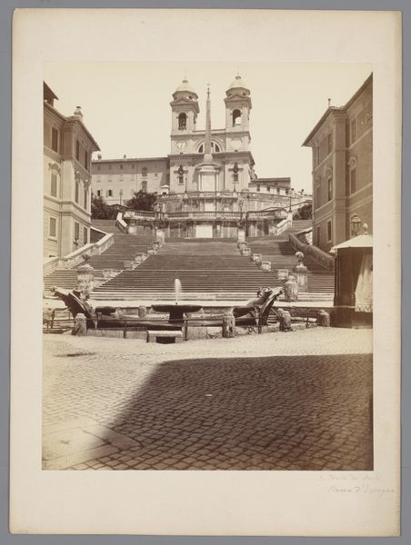 Giacomo Brogi captured this photograph of the Santa Maria Novella in Florence, Italy, during the late 19th century. The composition centers on the church's facade, flanked by an obelisk and surrounding buildings. The tonal range of the albumen print, from light grays to deep browns, creates depth. Brogi's choice of perspective emphasizes the geometric arrangement of the square, where lines converge towards the center, anchoring the church as the focal point. Note how the framing of the piazza is carefully constructed to evoke the Renaissance ideals of order and proportion, reflecting the prevailing cultural values. The presence of human figures adds a sense of scale and reality, inviting the viewer to partake in the space. Brogi's photograph invites us to reflect on the interplay between architectural form and the evolving narratives of urban spaces.
