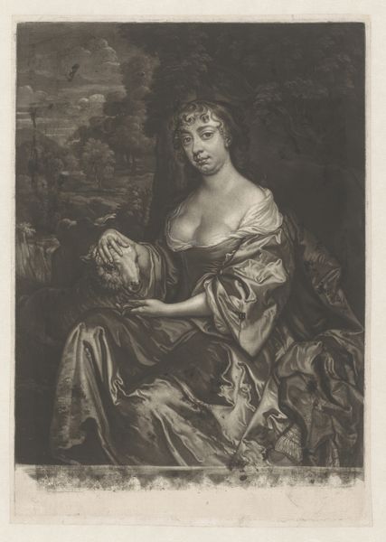 Editor: Here we have a reproduction – a photographic print from between 1880 and 1910 – of a painted portrait of Maria Schaep. What strikes me is how this reproductive method, a photograph of a painting, almost flattens the rich textures you'd expect. What do you notice when you look at it? Curator: What immediately grabs my attention is the transition of labor from the original painting to this photographic reproduction. We need to consider the material conditions: the accessibility of photography versus painting in this period and what that suggests about who would own, consume, and circulate this image of Maria Schaep. Editor: So, the act of reproduction itself democratizes the image, allowing for wider consumption than the original painted portrait allowed? Curator: Precisely. But let's delve deeper. Consider the materiality of the print itself – the paper, the chemicals used in its production. These were commodities, tied to specific industries and economies of scale. Does the warmth of the sepia tone soften or authenticate it, do you think? Editor: It gives a sense of antiquity, perhaps lending an air of historical importance and maybe even suggesting a specific level of perceived authenticity. Curator: Exactly! And notice the texture – or lack thereof – in relation to what must have been lush fabrics in the original. How does that flattening impact our understanding of Maria Schaep’s status and the work involved in creating those textiles and garments? Editor: It really makes me think about the layers of labor involved. The artist who painted the portrait, the craftspeople who created the clothing, and then the photographer. Thanks, that's given me so much more to consider than just the aesthetic value. Curator: It’s all about unveiling those layers, from the pigments to the printing press, to see how art is inextricably linked to material realities.
