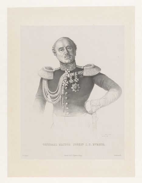 Curator: What strikes me immediately is the almost confrontational stare. There's a definite weight and power projected here, even in reproduction. Editor: That's interesting because my initial response is one of subdued formality, like we are seeing the reproduction of Michel Berthaud’s photograph of, most likely, Commandant Littré; a portrait made sometime between 1860 and 1890 that is carefully arranged and rigidly composed. It’s meant to convey authority, certainly. Curator: Oh, undoubtedly, but I am really interested in what these reproductions signify: the layered encoding of identity, achievement, even cultural dominance, especially when translated into widely distributed photographs such as gelatin-silver prints of this time. Editor: You raise such crucial points. To me, the proliferation of such images participates in the consolidation of power; It becomes crucial to deconstruct the mythologies embedded in portraits of military figures during an era rife with conflict. Think about the legacy of colonialism, for instance, silently reinforced through images just like this one. Curator: Exactly! The subject wears the symbols of his status so boldly, decorations displayed proudly on his uniform: These aren't mere ornaments, they signify active participation within a specific system of power and the image creates this heroic depiction as the symbolic "good guy" or representative for its people. Editor: Right! This is further proof of visual language doing what it does best: conveying ideologies! Considering Littré’s background within the French military apparatus demands that we consider the implications of what this imagery suggests regarding France’s imperial ambitions. It asks the hard questions about agency, responsibility, and who ultimately benefits from these carefully crafted images of leadership and authority. Curator: I find myself lingering on the reproduction method as much as the sitter, actually. Thinking about that shift in photographic accessibility in the late 19th century... I see continuity in its representational aims but so, so different to say a painted portrait of the era, where subtle manipulation was expected and normalized. Editor: That is important to consider. I suppose both painted portraits and reproduced photographic ones reinforce specific ideals through both artistic and mechanical means... And ultimately leave traces of ideological frameworks from the time they are circulated, which encourages further conversations and questions, such as this one. Curator: Yes, our fleeting glimpse opens into far wider social and political conversations which helps to ensure images from our cultural memory do not lull us into any historical slumbers! Editor: Absolutely, understanding their loaded nature ensures our reception is constantly self-aware!