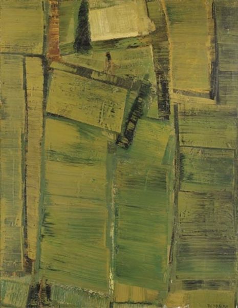 Edward Avedisian made this painting, Untitled [yellow and green], and it's a process of seeing and feeling through color. There's an immediacy and energy, like he's chasing something, or maybe being chased. Look at the surface, you can almost feel the push and pull of the brush. The paint isn’t too thick, but it’s there, a record of each stroke. There's a great big circle in the top right, yellow on green on yellow, with pale grey. It's not quite centered, and feels more like a target. Avedisian reminds me a little of Elizabeth Murray, not in the way the paintings look, but in the restless energy. Both artists help us embrace art’s open-endedness.