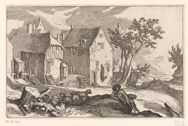 Claes Jansz Visscher created this print, “Huizen aan het water”, using etching and engraving techniques. Look closely, and you can see how the etched lines create soft, blurry shadows, while the engraved lines are sharp and precise. Visscher would have used a metal plate, acid, and specialized tools to create this image. The choice to create a print, rather than a unique painting, meant this image could be reproduced many times over, and sold at a lower price. Consider the labor involved: the skilled hand needed to guide the burin, the time spent bathing the plate in acid, and the physical exertion of printing each copy. This was a commercial venture, meant to appeal to a growing middle class with a desire for art in their homes. Understanding the materials, the making process, and the social context allows us to appreciate the craftsmanship and the economic forces at play in the creation of this seemingly simple waterside scene.