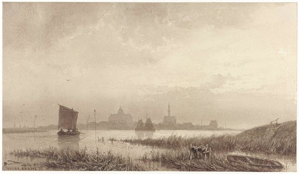 François Louis Thomas Francia created this sepia watercolor of Rouen from the Seine. Its delicate washes and subtle tonal variations evoke the tranquil atmosphere of a misty morning. The composition’s strength lies in how Francia uses the river as a stage, positioning the cityscape as a backdrop. Note how the foreground elements—the boats, the reflections on the water—establish depth, drawing us into the scene. The cathedral’s spires act as visual anchors, balanced by the masts of the ships. Francia’s skillful application of watercolor creates a sense of atmospheric perspective, where details fade and colors become muted with distance. This technique, rooted in optical science and the study of light, also suggests a philosophical consideration of time and perception, where the clarity of the present gradually dissolves into the past. Ultimately, it’s not just a view but a meditation on seeing itself.