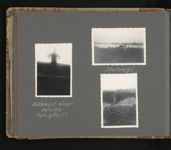 Editor: Here we have “Stellung in Pernis,” a photographic work dating from 1940-1941. It's an albumen print and is part of the Rijksmuseum collection. Looking at the layout of these smaller images on a single page, I’m immediately struck by a sense of historical documentation. What do you see here in terms of its significance? Curator: I see a powerful example of how photography was used during wartime, specifically during the Nazi occupation. This isn't simply a collection of landscapes; it's a record of fortifications and defense positions in Pernis, near Rotterdam. The seemingly mundane images of fields, embankments, and structures, when considered in their historical context, transform into evidence of a society preparing for and enduring conflict. Editor: So, you're saying the placement of the photographs transforms a personal snapshot into something more intentional? Curator: Precisely. Consider the photographer's decision to create a complete view. Also, what institution would deem this necessary, or worth the resources, to preserve, and how did its perspective affect our reading? Did it reinforce nationalist narratives? Were there also attempts to display the grim realities of occupation and wartime existence? These details are crucial for understanding the impact of photographs beyond their purely aesthetic qualities. Editor: That's fascinating. It makes me rethink how we categorize photographs – they can be simultaneously personal and powerfully political. Curator: Exactly. Analyzing photography means paying attention to not only what's depicted, but how it's framed, presented, and ultimately, interpreted within larger social and political structures. Editor: Thank you, I have never considered this work in this context, and it certainly informs a new way to interpret similar landscape photos. Curator: You're welcome! Considering context certainly offers valuable insights.