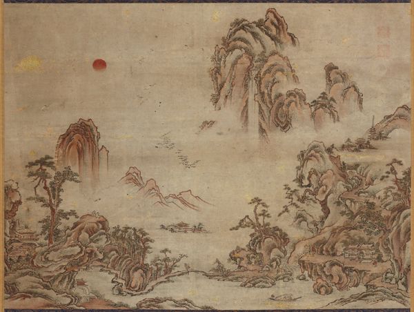 Curator: Immediately, I'm struck by the stillness, a pregnant pause before… something. It feels like the anticipation is almost palpable. Editor: I see that too! This is "Monkeys Watching a Praying Mantis Catching a Wasp," a piece made around the 18th century by Iwai Kōdun. The artist uses ink and watercolor on paper to depict this scene of heightened drama. Curator: The colors are muted, almost monochromatic, lending a kind of dreamlike quality. And those monkeys, posed as observers. Makes you wonder about their role, you know? Are they just curious, or is there something more sinister going on? Editor: That's a fascinating point. Consider the socio-political context. During the Edo period, there were strict hierarchical structures. Perhaps the monkeys symbolize the watching, waiting masses, and the insect struggle a commentary on power dynamics. Curator: Ooh, I like that. A miniature epic unfolding right there! But beyond that, I'm drawn to the sheer dynamism Kōdun captures in such a subtle way. Editor: The choice of such delicate media is compelling here. The transparency of watercolor layered with ink makes me consider ephemerality. Life is brief for the wasp. And even for societies and systems... everything passes. Curator: Right. It also adds a layer of vulnerability to the scene, like we're peeking into a fragile ecosystem. It also raises the question: What are we watching? Editor: Precisely! And what does our voyeurism signify? Is there an ethical component to artistic engagement? Curator: Well now, you're making me hungry for answers. But perhaps the point *is* the questions... the delicious ambiguity! Editor: Perhaps the power resides not just within the composition but also in its capability to trigger reflection long after the encounter, encouraging discussions about power and impermanence across time. Curator: Exactly! So, next time you find yourself feeling too powerful, remember these little monkeys. And wasps. Editor: Indeed, there’s always someone, or something, watching and waiting for their turn. Thank you for sharing your thoughts.