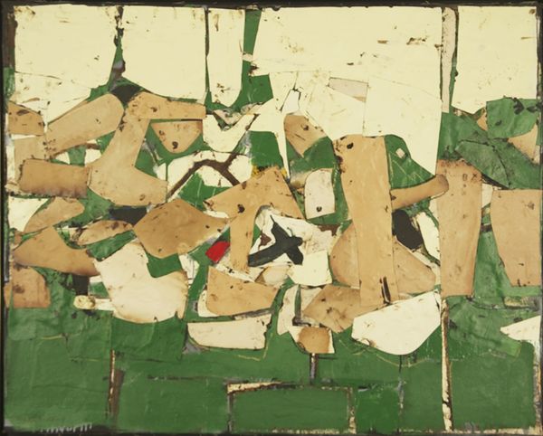 Editor: This is Katy Moran’s "Rooms of the Mind," currently residing at the Tate. It's a chaotic mix of forms and textures, almost like a deconstructed collage. What strikes you most about its composition? Curator: The strategic placement of the darker masses creates a visual hierarchy. Notice how these shapes, while seemingly random, serve to anchor the lighter, more fragmented elements. Editor: So, the dark shapes aren't just smudges; they're compositional tools? Curator: Precisely. Consider how the texture varies across the surface. The impasto in certain areas contrasts with the smoother washes, creating a dynamic tension. Editor: I see that now! I was initially put off by the lack of clear imagery, but focusing on the textures has opened it up. Curator: Indeed. The painting invites us to look beyond representation and appreciate the pure materiality of paint. Editor: I'll definitely be looking at abstract works differently from now on. Curator: As will I. Paying close attention to the artist's decisions regarding texture and form is crucial to understanding the work.