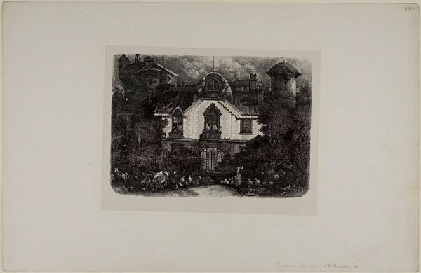 Editor: This is "Clock House, St. Albans" by J. L. Cranstone, currently at the Harvard Art Museums. It's a really delicate, detailed sketch, and I'm immediately drawn to the contrast between the solid-looking clock tower and the bustling market scene. What do you make of it? Curator: Notice how Cranstone meticulously renders the architectural details using a readily available material, likely graphite or ink. The artist transforms everyday materials into a depiction of commerce and community, highlighting the value of labor in representing the social fabric. How does this attention to detail influence your perception? Editor: It makes me think about how much work went into documenting this ordinary scene, elevating it, in a way. Thanks, I hadn't considered it that way! Curator: Precisely. By examining the materials and process, we can understand how Cranstone transforms a common scene into a valuable historical record.