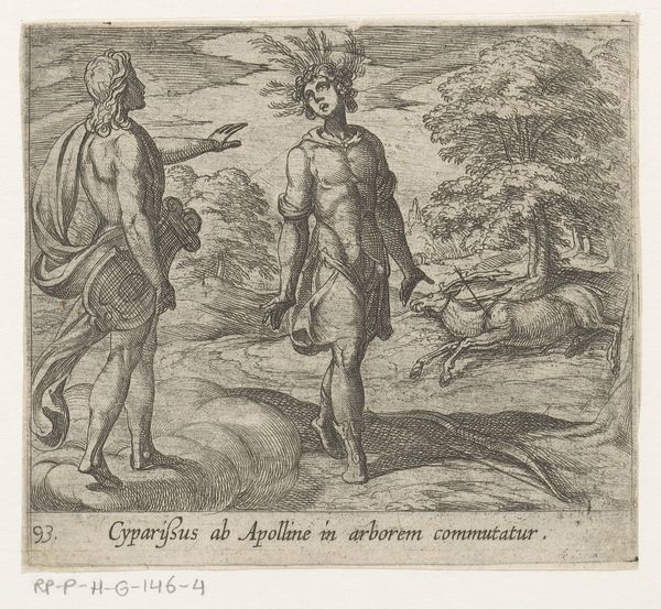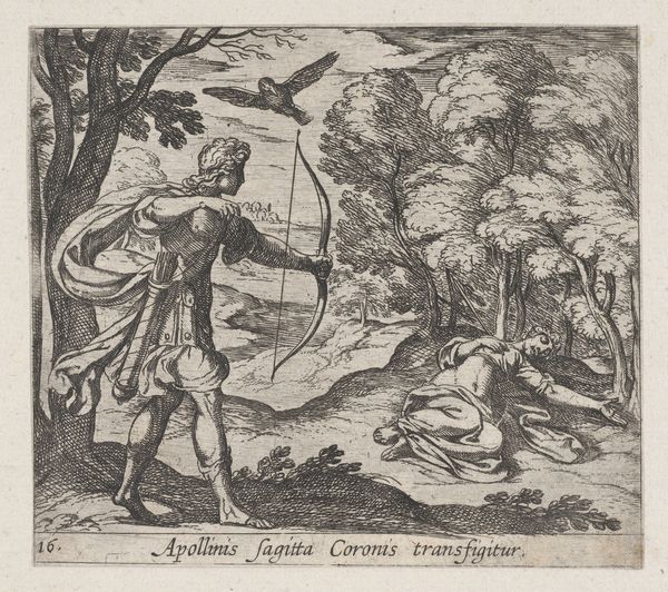 Editor: This is Antonio Tempesta’s 1606 engraving, “The Death of Orpheus from Ovid’s Metamorphoses,” currently at the Met. The chaotic energy is palpable, but it's also…elegant? The lines are so precise. What do you see in this piece? Curator: Beyond the graphic depiction of Orpheus's demise, I'm struck by how Tempesta captures the enduring power of myth through potent imagery. The Bacchantes, frenzied followers of Bacchus, become embodiments of unleashed, irrational forces. Editor: Irrational how? Curator: Their dismemberment of Orpheus isn't just violence; it's a symbolic rejection of order, reason, and Apollonian harmony, which Orpheus represents through his music. It's a clash of ideologies playing out through their bodies. See how their weapons are raised almost ritualistically? Editor: Yes, I notice that. So, it’s about more than just a story, it’s also an idea about the human condition. The terror. Curator: Precisely. Consider also Orpheus's lyre, discarded. A potent symbol of lost artistry and the silencing of poetic voice, replaced by primal, violent urges. The image serves as a memento mori and cautionary tale of passion without reason. Editor: That's… haunting, but also beautiful in a terrible way. I see a complexity here that wasn’t immediately evident. Thank you. Curator: And I appreciate your keen observation of both the chaos and the artistry within it. It underscores how symbols, even in scenes of destruction, continue to resonate and transmit cultural memory.