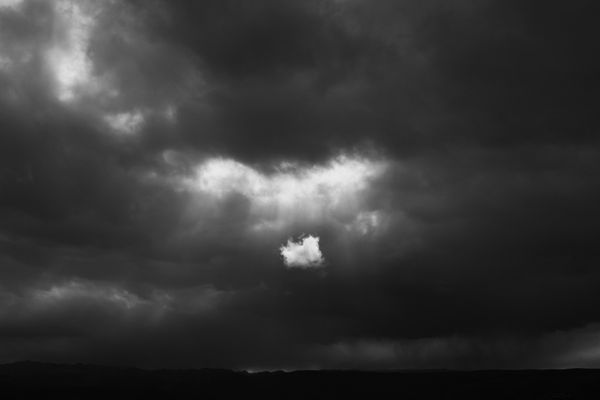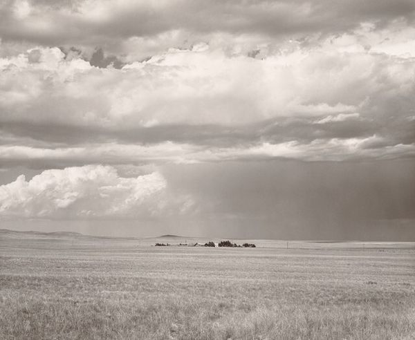 This photograph, Weld County, Colorado, by Robert Adams, captures a landscape with a sky full of drama. The monochromatic palette is beautifully subdued, focusing our attention on the tonal variations and the textures of the clouds and land. Adams seems to embrace the inherent qualities of his medium, the grainy texture of the film creating a kind of gritty realism. The clouds are heavy, pregnant with rain, rendered with soft, almost blurred edges that evoke their ephemeral nature. The land below is stark and minimal, anchoring the turbulent sky. The horizon line is low, emphasizing the vastness of the sky, which feels both ominous and awe-inspiring. Adams’s work resonates with that of the New Topographics movement, and reminds us of the beauty and complexity found in seemingly mundane landscapes. It’s about seeing, really seeing, the world around us, and finding meaning in the everyday.