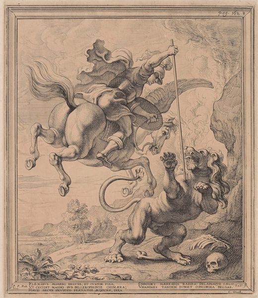 This is Cesare Fantetti’s "Flora," made using etching. Notice how the oval frame immediately focuses our attention on a celestial scene dominated by the goddess Flora, surrounded by cherubic figures amidst clouds. The composition employs a delicate balance of light and shadow achieved through fine, intricate lines. Observe how these lines define the forms of the figures and clouds, creating a sense of depth and movement within the composition. Flora, as the central figure, is rendered with flowing drapery and a graceful posture, embodying an idealized classical form. This work taps into the Renaissance fascination with classical mythology and the idealization of beauty. Consider how the formal elements, such as the arrangement of figures and the use of light, work together to convey a sense of harmony. It invites us to consider the semiotic function of the goddess Flora and the ways in which such imagery reinforces cultural values related to nature, beauty, and divinity.