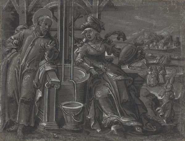 Curator: Let's delve into this captivating engraving, "Vogelverkoper," or "The Bird Seller," created by the artist known as Monogrammist IB between 1525 and 1530. It’s a window into a world viewed through a Northern Renaissance lens. Editor: It has an immediate quiet intensity; the fine lines and the figures' concentrated expressions draw you in. There's a certain intimacy captured in such a small format, like peering into a private moment. Curator: Indeed. As a print, it's part of a broader socio-cultural shift. Prints made art more accessible to a wider audience. Consider the politics of imagery during this period: who controlled the narratives, and who had access to visual representation? Editor: Absolutely, and that accessibility challenges power dynamics. I see in the image’s composition the embodiment of gendered labour and perhaps even exploitation. Note the two women examining the bird, presumably considering a purchase from the bird seller. Their agency is tangible but contained, subject to the economics of the time. Curator: The very act of buying and selling these birds carries symbolic weight. What does it mean to cage a wild creature, to control nature, to trade in freedom? Editor: We could explore this act of commercial exchange through postcolonial theory, touching upon exploitation, control, and how power structures play out through such everyday transactions. The gaze between the figures – is it transactional, equitable, or something more complicated? Curator: And think about the artist's position too. As an artist producing imagery within this framework, are they complicit, critical, or simply reflecting their time? Editor: It prompts reflection on how historical context shapes even seemingly simple scenes. How the role of women as purchasers contrasts with the perceived freedom associated with caged birds makes the viewer question what freedom really entails within structures of inequity. Curator: Precisely, it forces us to consider art’s enduring capability to reflect—and refract—our understanding of our society and its development. It reveals that the concerns of people living five hundred years ago are really not so alien. Editor: A tiny picture sparks major discussions. That’s why exploring the nuances is essential, isn’t it?