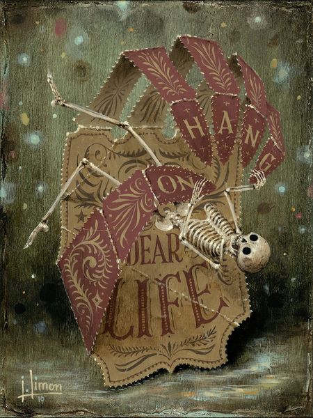 Jason Limon made this panel painting, called "Delicate Shelter," using a soft, muted color palette. It feels a little bit like looking into the past. The texture is really fascinating; it looks like Limon built up layers, creating a tactile surface that draws you in. Take a look at the central form, it's like a seed pod, or maybe a strange sort of chrysalis. The segments that form the shell have this lovely gradient of color on each section. Then there's this figure of a skeleton holding a single rose. It's this beautiful memento mori image, but with such a sense of tenderness and care. There is a dialogue between past and present, life and death, growth and decay. It reminds me a little bit of Joseph Cornell’s boxes, but through the lens of someone like Frida Kahlo; deeply personal, richly symbolic. It's about the ambiguity of art, that it can embrace so many interpretations and meanings, all at once.