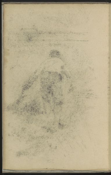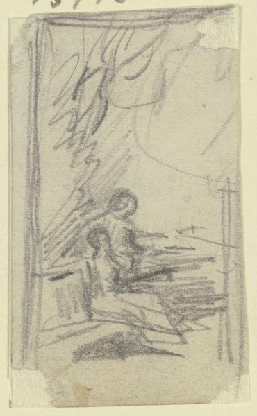 Editor: Here we have John Sell Cotman’s drawing "Actors," made with graphite and colored pencil on paper. It looks like a quick sketch, almost a memory fading at the edges. What do you make of its ghostly quality? Curator: Indeed, there is a dreamlike element here. Tell me, what does the composition itself suggest to you about these figures? Consider their placement and relative size. Editor: Well, the actor in motion is more dynamic but also less clearly defined than the standing figure. I wonder if that reflects their roles, or maybe the ephemeral nature of performance? Curator: That's a keen observation. Performance as transformation... think of the masks and costumes of ancient theatre, meant to embody archetypes. Could these "actors" be vessels for larger ideas or forces? Editor: Perhaps, but it also feels like a very personal observation, not a grand statement. Curator: Yes, it dances between those worlds. The artist observes real life, but theatre itself already deals in heightened emotions. Do you think Cotman might be exploring the line between our inner lives and public roles? Editor: That's an interesting thought! So maybe he is asking, what is performance versus identity, when each of us plays many roles? I like how it gets me thinking about how fluid identity can be! Curator: Precisely. Cotman uses seemingly simple strokes to touch on deep and resonating themes. His "Actors" remind us that the self is, perhaps, also a stage.