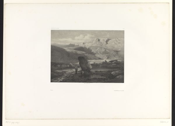 Curator: So, we’re looking at Alexandre Calame’s "Berglandschap met bomen en beek", a mountain landscape rendered in pencil sometime between 1852 and 1855. What strikes you first about it? Editor: The stark contrast—a whole scene built with the simple means of light and dark pencil work. There's a lot of visual weight for something so delicately crafted. Curator: It's fascinating how Calame situates himself, and us, in relation to nature. Romanticism often grappled with ideas of the sublime, with the awesome and terrifying power of nature laid bare. The role of pencil drawing here is interesting; a tool which, due to industrial advancements was becoming more accessible. Editor: Exactly. Pencil drawings like these democratized landscape art. You didn't need to be an oil painter to capture nature's essence; the pencil and paper sufficed. Curator: It invites consideration around themes of labor, accessibility, and the means through which art production can both enable and reflect wider socio-economic and cultural changes. And to consider art production's legacy. The work certainly echoes with echoes of past engravers like Dürer. Editor: Absolutely. There’s almost a printed quality. But at the same time, you feel the hand of the artist so directly; you understand how Calame might have spent hours refining tonal relationships. The raw, unfinished quality is particularly appealing here. Curator: Indeed, it pushes us to think about the concept of "finish," and what labor contributes to it, even the labor of imagination that informs material decisions. Considering this image within wider visual culture—where it stands alongside concurrent approaches to landscape and drawing that span from naturalist documentation to overtly political statements about land and environment feels valuable here. Editor: Ultimately it underscores the importance of both the artist's vision and the materials used to make this kind of beauty accessible. Curator: Agreed. I've gained a greater appreciation for the layers of social significance enmeshed within what appears, at first glance, as simply a mountain scene. Editor: And I am reminded of the tangible effort—the hours invested and material impact represented. Thanks for exploring this artwork together!