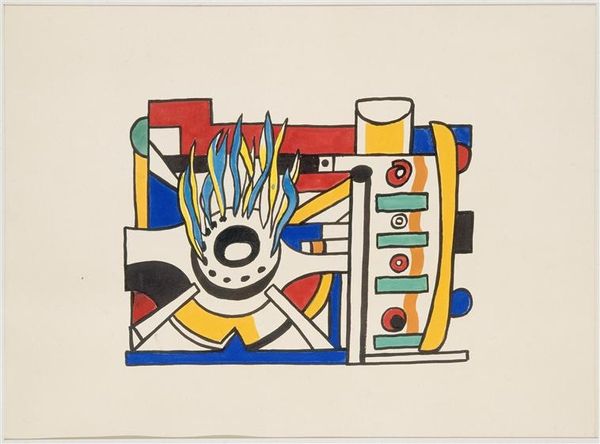 Fernand Léger made this gouache on paper called "Composition for a Mural", in France sometime in the 20th century. Bold outlines and flat planes of color give it a graphic punch, like a blueprint for some kind of machine-organism hybrid. Léger was into process, not just painting what he saw, but showing how things are made, almost like revealing the hidden structure of the world. The texture's smooth, but the colors? They're anything but shy. Primary hues pop against that deep blue background, creating a strange harmony. Look at that red shape. It's reaching, almost grasping, with lines that feel both mechanical and organic. It reminds me of how he saw the modern world – a collision of nature and industry. Léger's work is all about this kind of visual language, a bit like Picasso, who was also working in France at this time, but with a different visual vocabulary. Both were interested in showing the mechanics behind how we see and understand things.