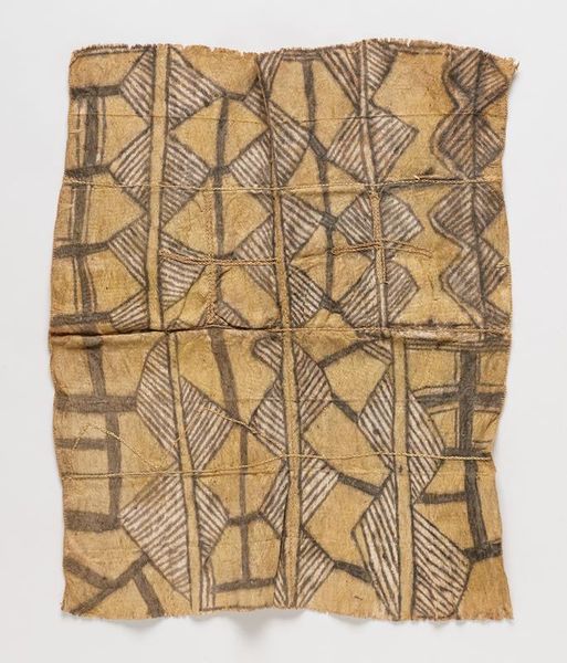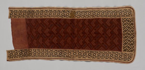 Editor: This striking "Woman’s Overskirt," a textile piece from the 19th century Kuba culture, really caught my eye. All of those carefully woven geometric patterns—triangles, diamonds, zigzags, boxes within boxes. The sheer amount of work and repetition…it feels like more than just decoration. What symbolic significance do you see in it? Curator: The repetition, you’re right to notice it, functions almost like a visual mantra. Consider what those shapes, abstracted from the natural world, might evoke in the viewer. Think of triangles referencing mountains, representing stability, aspiration, and the link between the earthly and the spiritual realms. Diamond patterns frequently symbolize the feminine, or even abstract eyes, and are thought to possess protective powers. These repeated forms aren’t simply decoration; they're cultural memory woven into being. Editor: So the skirt is a kind of walking history book? What about the varying textures achieved through weaving—does that affect the reading? Curator: Precisely! Think of it as a form of non-verbal communication, rich in cultural nuance. Each pattern acts as a signifier, loaded with meaning that would be readily understood within the Kuba community. Now, consider this: what stories might those skilled artisans be subtly telling, with each stitch, each repetition? What cultural continuity might this artwork be instilling in its wearer? Editor: Wow. I initially just saw an interesting pattern, but knowing it’s essentially wearable symbolism makes it much more powerful. I hadn't considered that clothing can embody an entire cultural narrative. Curator: And, like all forms of cultural expression, the narrative is continually evolving.