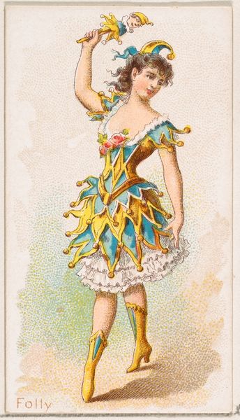 Editor: This is "Valentine," a drawing/print made anonymously between 1875 and 1880. It feels so whimsical and… well, definitely ornate! All those delicate, lacy details framing the dandy in pink! How would you interpret the symbolism here? Curator: Ah, a confection of imagery! Look closer – how does the central figure negotiate the symbols of love and war? "Having left Mars, for Cupid I seek promotion"—the banner states a career change of sorts. Editor: Right, shifting allegiance from Mars, the god of war, to Cupid, the god of love! Curator: Precisely! This "promotion" reflects not only the changing societal views on love and duty, but perhaps even individual emotional transitions. Notice how he holds his sword in a somewhat nonchalant fashion. Almost theatrical. Do you think it implies a real renunciation of aggression? Editor: I’m not sure! Maybe the dandy is playing with the idea of peace but still clings to the trappings of aggression? The lace surrounding him – what is its psychological impact, juxtaposed with his saber? Curator: The lace certainly softens the blow, so to speak. These opposing symbolic codes create a delightful tension. Victorian Valentines were complex; a confluence of idealised romance and social commentary. Editor: I guess it’s not as simple as a modern greeting card. So much is being communicated. Thanks! Curator: My pleasure. A reminder that even the most seemingly simple image is embedded with cultural memory.