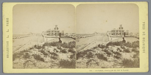Editor: We are looking at "Gezicht op de Boulevard van Scheveningen, met links het Kurhaus" a photographic print by Römmler & Jonas made sometime before 1891. It’s an albumen print, a popular medium at the time, showing a view of a beachside resort. I’m struck by how much activity is captured – tiny figures along the shore. What’s your take on this image? Curator: It’s interesting to consider the material reality behind this idealized image. Albumen prints like this were mass-produced, often used for tourist souvenirs. Look at the crisp detail afforded by the process – the texture of the sand, the architecture of the Kurhaus. Photography at this time wasn’t just about artistic expression; it was about creating and distributing images as commodities. How does that change how you read this image? Editor: I hadn't really considered the production side, it's made me realise how staged this photo could be. So much of it looks idyllic in its uniformity. Could this be showing more than just a seascape, perhaps some commentary on social class or urbanisation at the time? Curator: Absolutely. Consider who would be buying these prints. The burgeoning middle class, eager to display their travels and experiences. This image functions as both a record of a place and an aspiration. It signifies leisure, and access – who had the time and money to visit Scheveningen, let alone buy a photograph of it? Editor: That gives a fresh perspective. It isn't as simple as I first assumed. Curator: Exactly! By focusing on the materiality – the albumen print itself, the means of its production and circulation – we can unpack layers of social and economic meaning embedded within this seemingly straightforward landscape. It becomes an artefact ripe with cultural information. Editor: I see that now! I hadn't thought about the photo *as* object, instead of just the image it projects. Thanks.