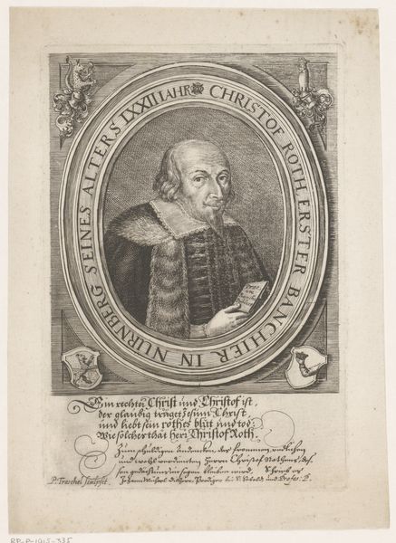 This engraving of Theodor Furlohn at age 56, was made in 1638 by Sebastian Furck. It’s made from carving lines into a metal plate, inking the surface, and then using a press to transfer the image onto paper. The technique demands precision and control, reflecting Furlohn's status as a man of learning and authority. The linear texture influences the image's appearance, lending a sense of formality and meticulous detail. Look at the way Furck describes the textures of fabric and flesh with simple marks. Engraving was a skilled craft, requiring years of apprenticeship. Furck's expertise speaks to a culture that valued both artistic skill and the power of the printed image. In a pre-photographic era, engravings played a crucial role in disseminating information and constructing identities. The amount of work involved in the production process elevated the status of both the artist and the sitter. Paying attention to materials and making processes, it can break down traditional hierarchies between art and craft.