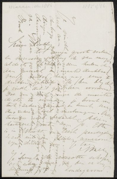 Editor: Here we have Adriaan Pit's "Brief aan Philip Zilcken," possibly from 1887. It’s an ink drawing on paper. It reminds me of old letters discovered in a dusty attic. What stands out to you when you see this work? Curator: I see a powerful example of how personal correspondence can become a historical artifact, revealing insights into the social and intellectual networks of its time. This letter, beyond its immediate personal context, reflects broader themes of communication and connection during a period of significant social change. How might we consider this letter within the framework of social history, thinking about literacy, class, and access to communication? Editor: That's interesting! I was focused on it as a visual object. I hadn’t considered the class aspect so directly. Curator: Well, let's also look closer at the act of writing itself during the late 19th century. Penmanship was both a practical skill and a form of social capital. How does the very style of handwriting communicate elements of identity, education, and social positioning in a way that is either enabled or restricted along cultural norms? Editor: It definitely has a unique aesthetic. So, you're saying that even the style of handwriting could be seen as a reflection of someone’s identity? Curator: Exactly. It underscores how deeply embedded art practices are within societal structures. How the personal touches the political and vice versa. What do you make of that interplay? Editor: I think it is about considering art and the way we communicate as being influenced by so many social factors. It has definitely provided another perspective of seeing art. Curator: Indeed, it is a window into the past, reminding us of the importance of understanding art as a cultural mirror.