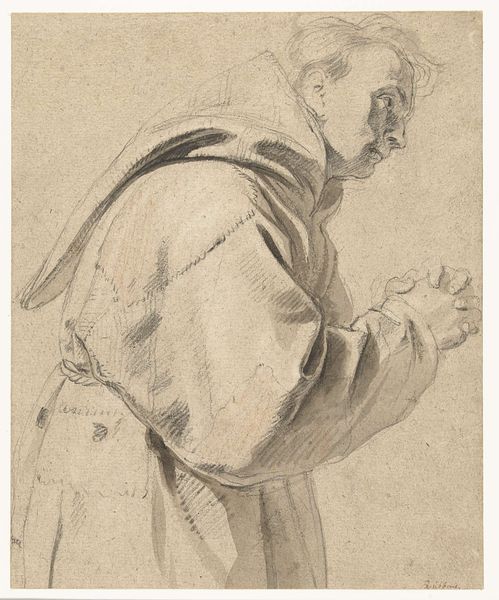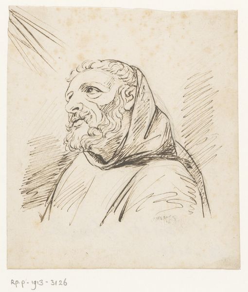 Lo Spagna created this drawing, "The Blessed Egidius," a preparatory cartoon for a fresco, using black chalk on paper. The drawing is dominated by the figure of Egidius, depicted in profile with a contemplative expression. Notice the artist's meticulous attention to line and form. The subtle gradations of tone, achieved through delicate cross-hatching, define the contours of Egidius's face, and create a tactile quality to the monk's habit. The composition is structured by the interplay of light and shadow, which highlights the subject's features and monastic attire. What might this tell us about the fresco it was intended for? Consider, first, the linear structure: the economy of line and precision would translate to a clear, readable image, even when transferred to a larger scale. And the modulation of light across the paper would create depth and volume, adding a sense of realism to the final fresco. Thus, the drawing isn't merely a preliminary sketch, but a highly refined study in its own right. It serves as a testament to the artist's technical skill and conceptual clarity.