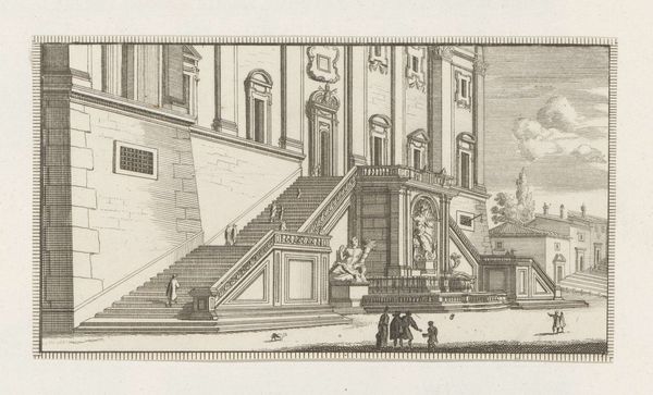 Curator: Here we have Domenico Amici’s “Interior of a Palace,” a plate print currently residing at the Harvard Art Museums. Editor: It feels like a dream, all delicate lines and airy space. So precise, yet somehow…unfinished? Curator: Precisely! Amici’s sharp use of perspective creates a seemingly endless depth within the palace. Note the repetition of the columns and the intricate coffered ceilings. Editor: The figures scattered throughout seem almost like afterthoughts, tiny amidst such grandeur. Do you think they feel lost in there, or empowered by it? Curator: Perhaps a bit of both. They emphasize the sheer scale, and also draw the viewer into imagining themselves within that space, contemplating its power. Editor: Right, like we’re meant to wander those halls ourselves. A fascinating glimpse into a space that feels both real and completely imagined.