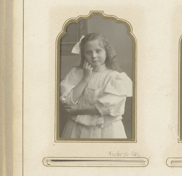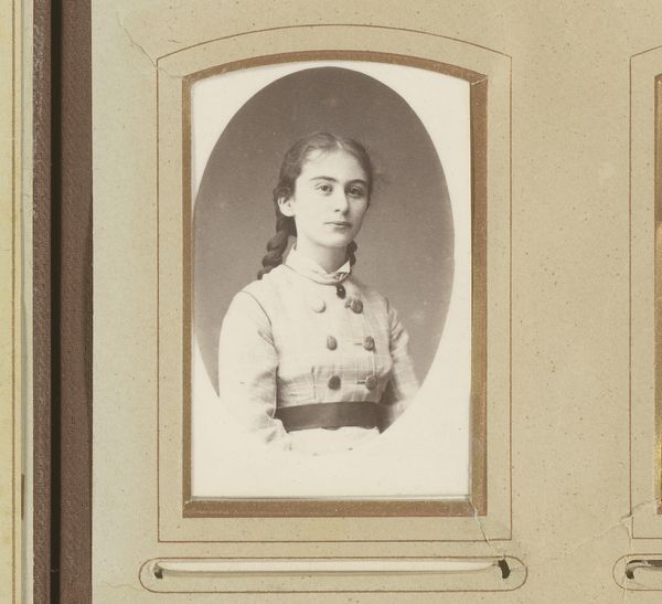 Editor: Here we have "Portret van een jonge vrouw" by Johannes Vlaanderen, dating from around 1890 to 1910. It looks like an early photograph, sepia-toned and capturing a young woman with a delicate expression. The photograph seems like it might have been taken by a professional studio for upper-middle class client, perhaps even a child worker, posing her almost as a miniature adult. How would you interpret it? Curator: Immediately, my interest lies in the production of this image. Looking closely at this young woman's dress—its details, buttons, the striped fabric at her collar and wrists—reveals much. These fabrics were likely machine-made, reflective of burgeoning industrialization. Can we see within the creation of these materials, clues about labor practices and consumption of the time? Editor: That's interesting. I was more focused on the individual and the pose. But looking at it now I wonder, was her garment something that was made specifically for the photograph? A disposable means of crafting an identity? Curator: Exactly! Consider the very nature of photographic materials at this time, the chemicals involved, the printing processes. All these elements speak to broader social structures and industrial developments. Photography itself, still a relatively novel technology, reflects new possibilities of recording and consuming images, changing concepts of labor and image creation. Is this art or a new kind of crafted product that exists due to changing attitudes towards art creation, or the industrialization of portraiture and fashion itself? Editor: So, beyond just seeing a portrait of a young woman, you're suggesting we can see evidence of changing production and consumption. Curator: Precisely. And even how that production is veiled and carefully styled by the consumer to represent themself in an aspirational light. What story is absent from the photograph in the pursuit of its carefully curated image? Editor: This definitely gives me a new appreciation for how seemingly simple images can contain layers of information about materials and how they relate to larger social and economic contexts. I guess I learned that looking closely at the "stuff" of art can tell a more detailed historical narrative. Curator: Agreed. Analyzing art this way brings valuable nuance, shifting our understanding from individual artistry to broader material conditions shaping artistic production.