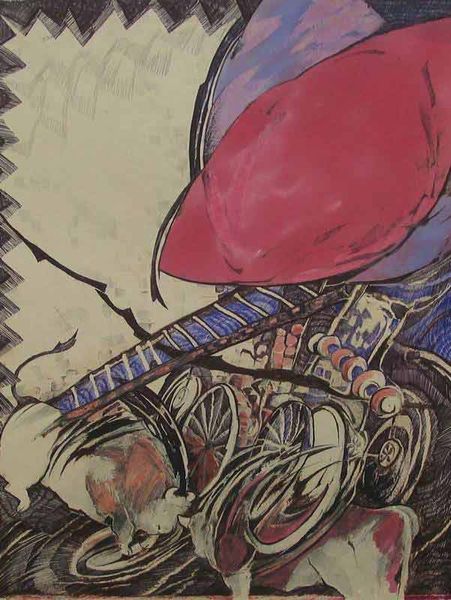 Małgorzata Serwatka made Dauka 6 with a kind of delicate touch, layering colour and texture to build a form that seems both solid and ethereal. It’s all about the dance of line and hue, watching how a simple mark can turn into something quite complex. I am drawn to the swirling, almost hypnotic central form. It feels like a tornado of texture and color. Serwatka uses this technique to create a visual journey that's not just about looking, but about feeling the movement and rhythm of the piece. The juxtaposition of warm golds and cool reds gives it a vibrant, almost pulsating quality. You can almost feel the energy radiating from the painting. There’s something of Hilma af Klint in this, with her own use of swirling forms to create an abstract and spiritual image. Like Klint, Serwatka reminds us that art doesn’t always need to be pinned down with one meaning. It's more about the experience and the questions it stirs within us.